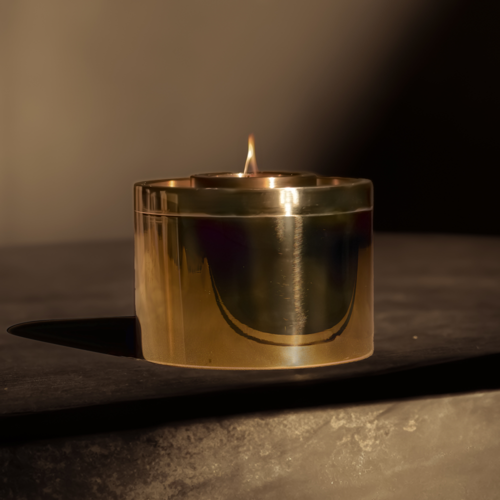 Volcano is a solid brass oil burner defined by a grounded silhouette and sculptural clarity.